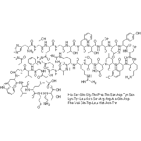 Sequence H-His-Ser-Gln-Gly-Thr-Phe-Thr-Ser-Asp-Tyr-Ser-Lys-Tyr-Leu-Asp-Ser-Arg-Arg-Ala-Gln-Asp-Phe-Val-Gln-Trp-Leu-Met-Asn-Thr-OH;